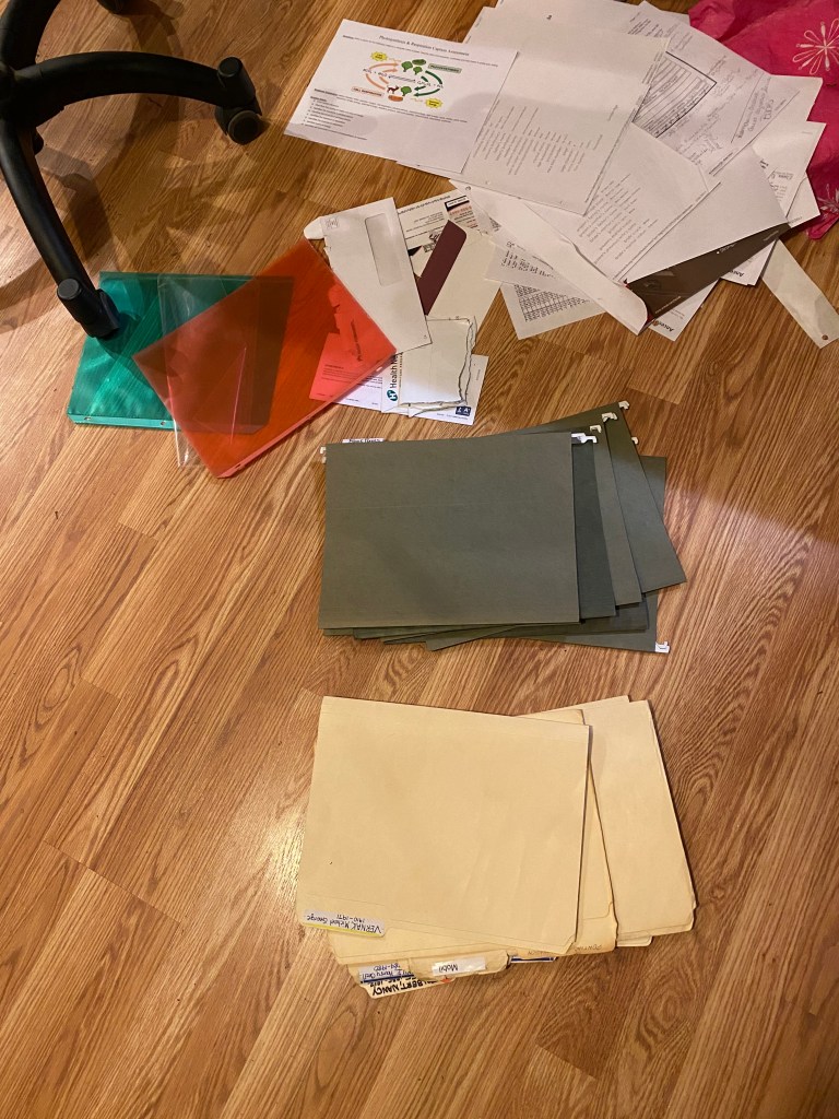 Second, I decided to declutter/organize my genealogy boxes. This picture shows the end result. I started with 2 boxes this size and reduced to one box. I confirmed every bit of information on every piece of paper I decluttered was also found in my Ancestry tree. I also made a spreadsheet for the birth, marriage, and death certificates I have. Needless to say, this led to rabbit hole “excitement” for me.